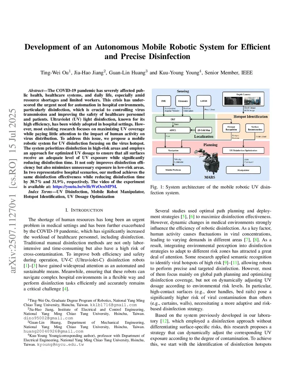 Development of an Autonomous Mobile Robotic System for Efficient and Precise Disinfection