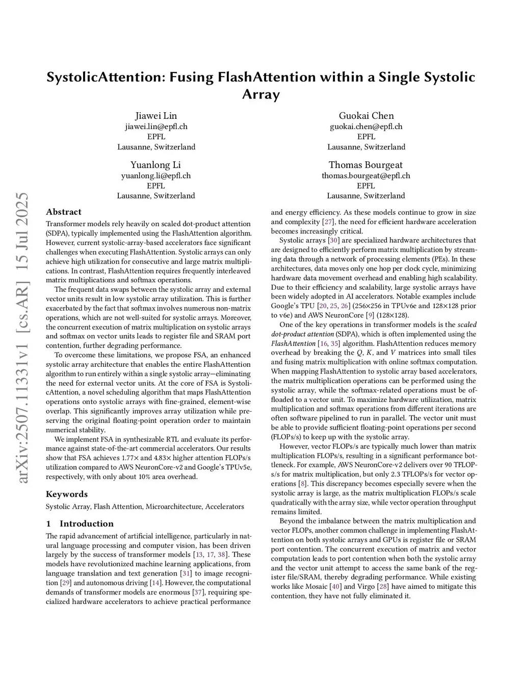 Transformer models rely heavily on the scaled dot-product attention (SDPA) operation, typically implemented as FlashAttention. Characterized by its frequent interleaving of matrix multiplications and softmax operations, FlashAttention fails to fully utilize the compute resources of modern systolic-array-based accelerators designed for consecutive and large matrix multiplications.To fully unleash the performance potential of systolic arrays for FlashAttention, we propose FSA, an enhanced systolic array architecture that runs the entire FlashAttention on the array without external vector units. Combined with SystolicAttention, an optimized kernel for FSA that achieves fine-grained and element-wise overlapping of FlashAttention operations, FSA maximizes array utilization while preserving the original floating-point operation order of FlashAttention. We implement FSA in synthesizable RTL and evaluate its performance against state-of-the-art systolic-array-based accelerators. Our results show that FSA achieves 1.77x and 4.83x higher attention FLOPs/s utilization compared to AWS Neuron-v2 and Google TPUv5e, respectively. We synthesize FSA in a 16 nm technology at 1.5 GHz, and results indicate only a 12% area overhead compared to a standard weight-stationary systolic array.