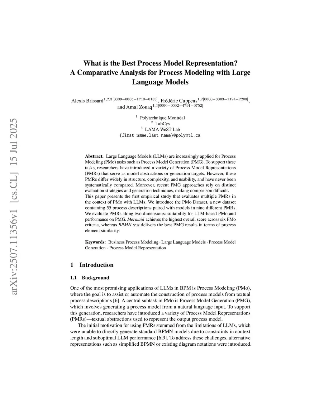 Large Language Models (LLMs) are increasingly applied for Process Modeling (PMo) tasks such as Process Model Generation (PMG). To support these tasks, researchers have introduced a variety of Process Model Representations (PMRs) that serve as model abstractions or generation targets. However, these PMRs differ widely in structure, complexity, and usability, and have never been systematically compared. Moreover, recent PMG approaches rely on distinct evaluation strategies and generation techniques, making comparison difficult. This paper presents the first empirical study that evaluates multiple PMRs in the context of PMo with LLMs. We introduce the PMo Dataset, a new dataset containing 55 process descriptions paired with models in nine different PMRs. We evaluate PMRs along two dimensions: suitability for LLM-based PMo and performance on PMG. \textit{Mermaid} achieves the highest overall score across six PMo criteria, whereas \textit{BPMN text} delivers the best PMG results in terms of process element similarity.