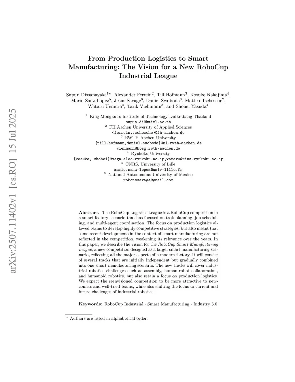 From Production Logistics to Smart Manufacturing: The Vision for a New RoboCup Industrial League