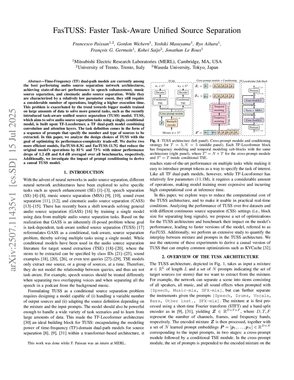 FasTUSS: Faster Task-Aware Unified Source Separation