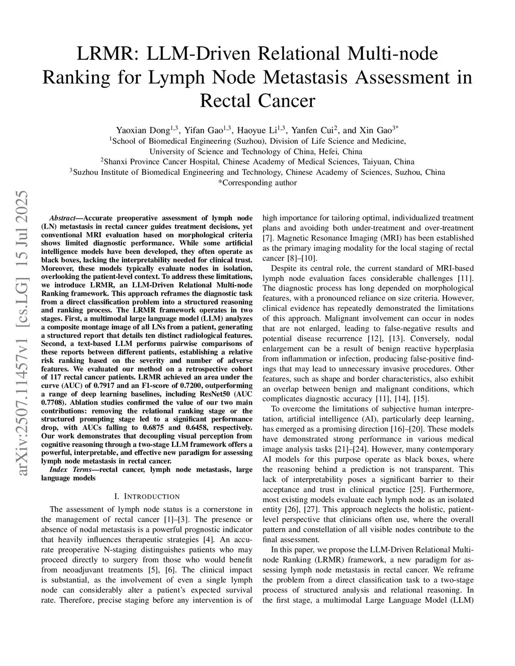LRMR: LLM-Driven Relational Multi-node Ranking for Lymph Node Metastasis Assessment in Rectal Cancer