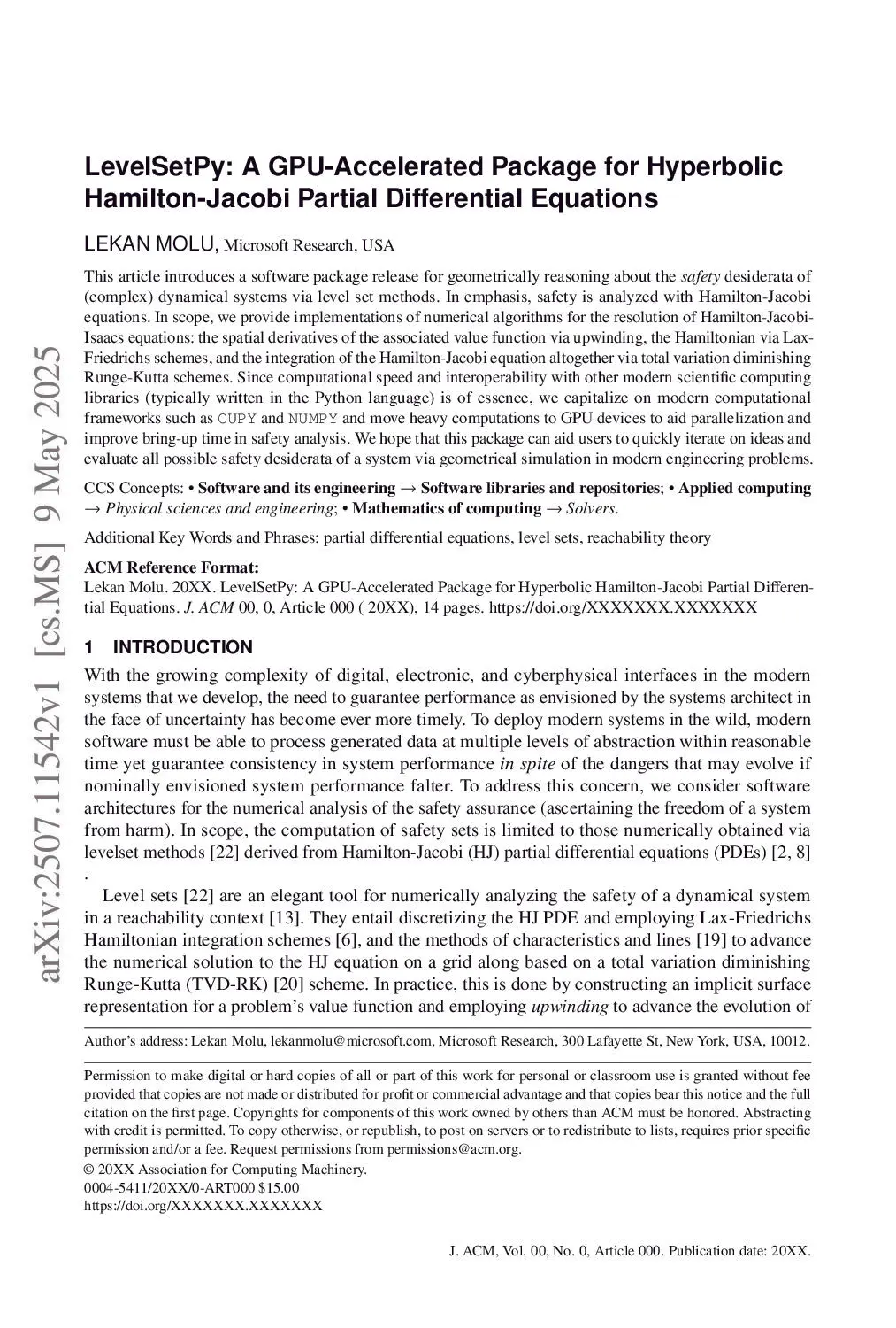This article introduces a software package release for geometrically reasoning about the \textit{safety} desiderata of (complex) dynamical systems via level set methods. In emphasis, safety is analyzed with Hamilton-Jacobi equations. In scope, we provide implementations of numerical algorithms for the resolution of Hamilton-Jacobi-Isaacs equations: the spatial derivatives of the associated value function via upwinding, the Hamiltonian via Lax-Friedrichs schemes, and the integration of the Hamilton-Jacobi equation altogether via total variation diminishing Runge-Kutta schemes. Since computational speed and interoperability with other modern scientific computing libraries (typically written in the Python language) is of essence, we capitalize on modern computational frameworks such as \texttt{CUPY} and \texttt{NUMPY} and move heavy computations to GPU devices to aid parallelization and improve bring-up time in safety analysis. We hope that this package can aid users to quickly iterate on ideas and evaluate all possible safety desiderata of a system via geometrical simulation in modern engineering problems.