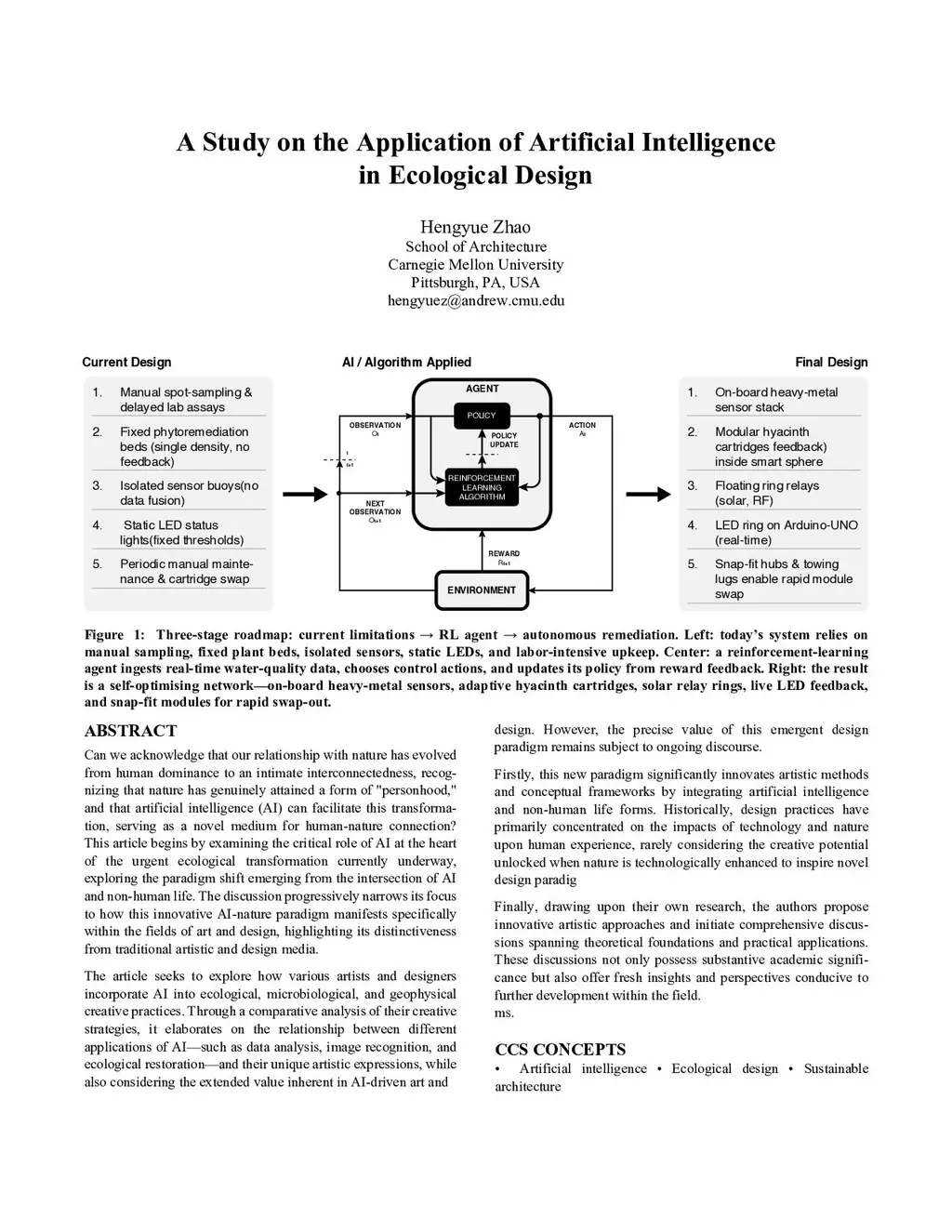 This paper asks whether our relationship with nature can move from human dominance to genuine interdependence, and whether artificial intelligence (AI) can mediate that shift. We examine a new ecological-design paradigm in which AI interacts with non-human life forms. Through case studies we show how artists and designers apply AI for data analysis, image recognition, and ecological restoration, producing results that differ from conventional media. We argue that AI not only expands creative methods but also reframes the theory and practice of ecological design. Building on the author's prototype for AI-assisted water remediation, the study proposes design pathways that couple reinforcement learning with plant-based phytoremediation. The findings highlight AI's potential to link scientific insight, artistic practice, and environmental stewardship, offering a roadmap for future research on sustainable, technology-enabled ecosystems.