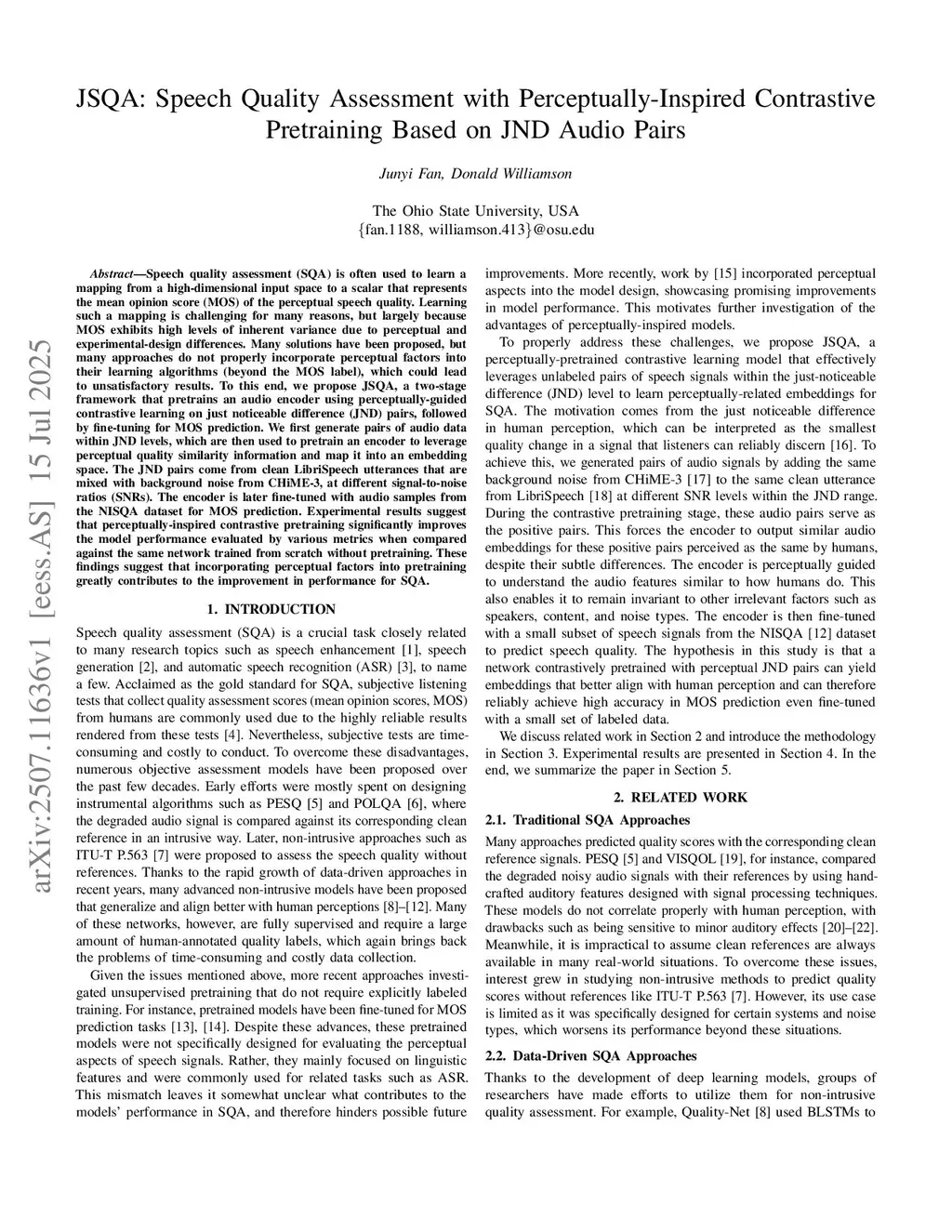 JSQA: Speech Quality Assessment with Perceptually-Inspired Contrastive Pretraining Based on JND Audio Pairs