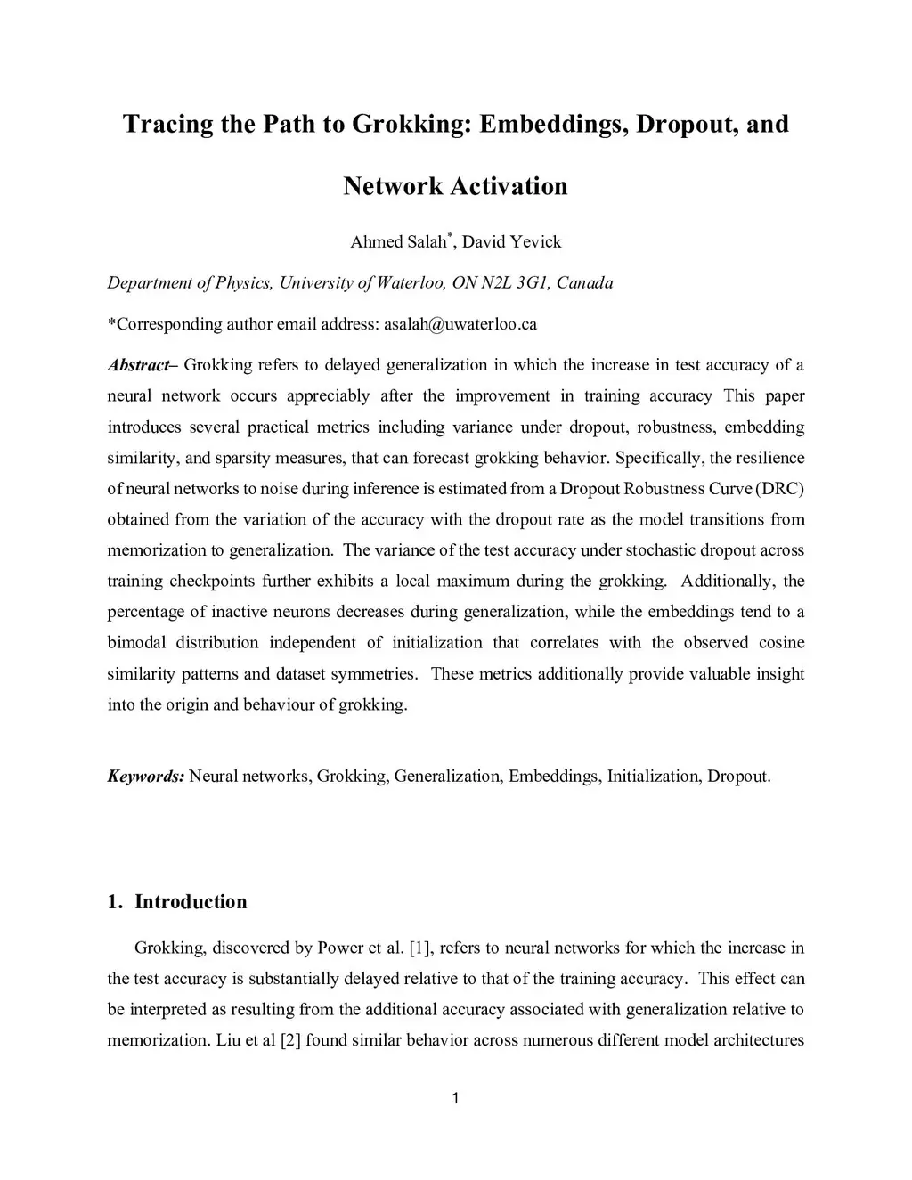 Tracing the Path to Grokking: Embeddings, Dropout, and Network Activation