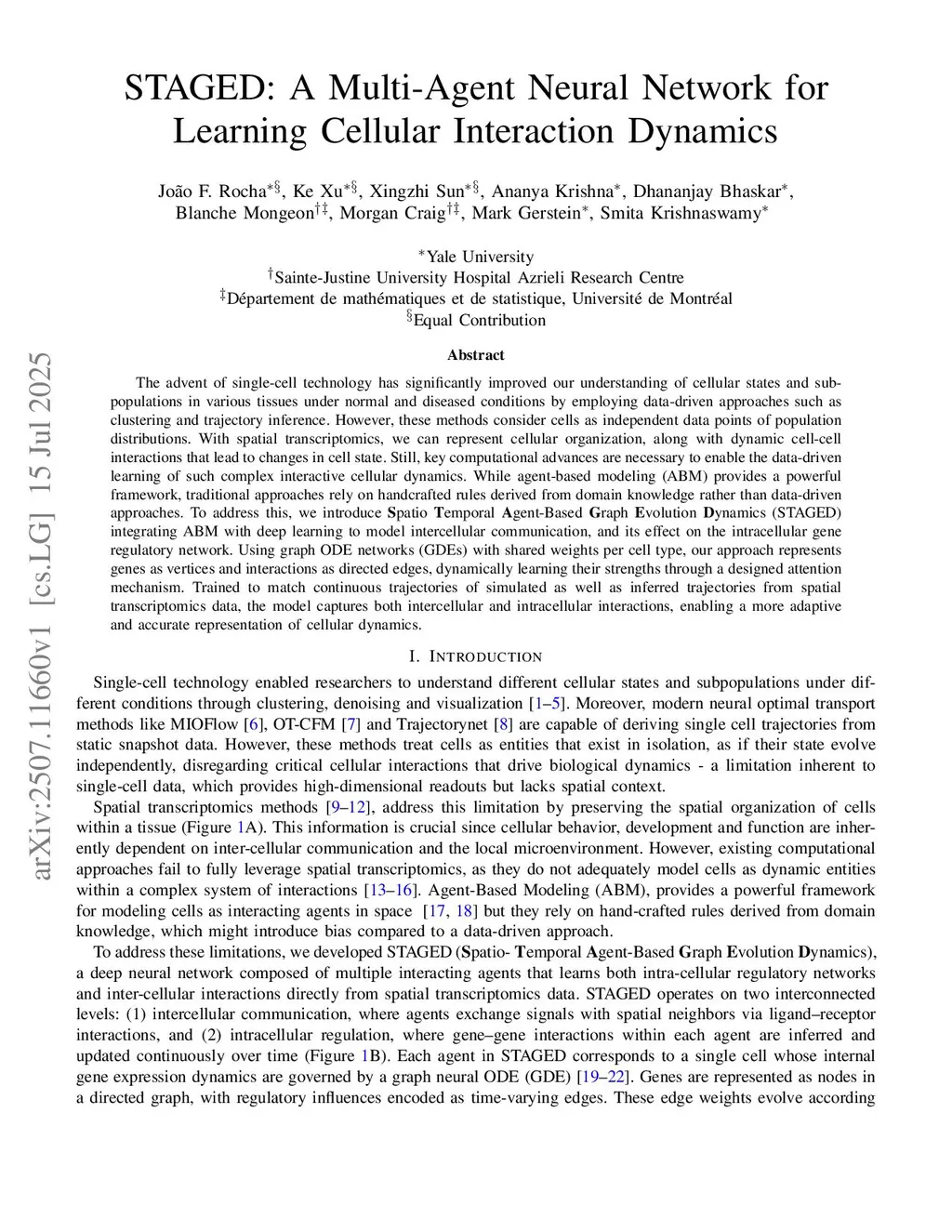 STAGED: A Multi-Agent Neural Network for Learning Cellular Interaction Dynamics