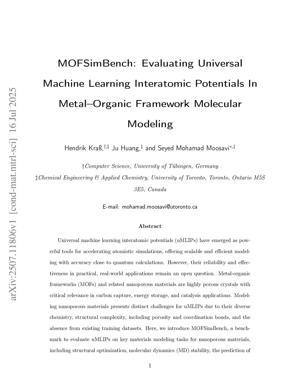 Universal machine learning interatomic potentials (uMLIPs) have emerged as powerful tools for accelerating atomistic simulations, offering scalable and efficient modeling with accuracy close to quantum calculations. However, their reliability and effectiveness in practical, real-world applications remain an open question. Metal-organic frameworks (MOFs) and related nanoporous materials are highly porous crystals with critical relevance in carbon capture, energy storage, and catalysis applications. Modeling nanoporous materials presents distinct challenges for uMLIPs due to their diverse chemistry, structural complexity, including porosity and coordination bonds, and the absence from existing training datasets. Here, we introduce MOFSimBench, a benchmark to evaluate uMLIPs on key materials modeling tasks for nanoporous materials, including structural optimization, molecular dynamics (MD) stability, the prediction of bulk properties, such as bulk modulus and heat capacity, and guest-host interactions. Evaluating over 20 models from various architectures on a chemically and structurally diverse materials set, we find that top-performing uMLIPs consistently outperform classical force fields and fine-tuned machine learning potentials across all tasks, demonstrating their readiness for deployment in nanoporous materials modeling. Our analysis highlights that data quality, particularly the diversity of training sets and inclusion of out-of-equilibrium conformations, plays a more critical role than model architecture in determining performance across all evaluated uMLIPs. We release our modular and extendable benchmarking framework atthis https URL, providing an open resource to guide the adoption for nanoporous materials modeling and further development of uMLIPs.