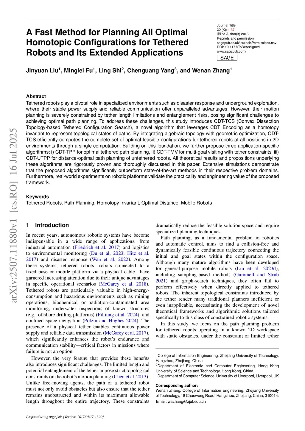 Tethered robots play a pivotal role in specialized environments such as disaster response and underground exploration, where their stable power supply and reliable communication offer unparalleled advantages. However, their motion planning is severely constrained by tether length limitations and entanglement risks, posing significant challenges to achieving optimal path planning. To address these challenges, this study introduces CDT-TCS (Convex Dissection Topology-based Tethered Configuration Search), a novel algorithm that leverages CDT Encoding as a homotopy invariant to represent topological states of paths. By integrating algebraic topology with geometric optimization, CDT-TCS efficiently computes the complete set of optimal feasible configurations for tethered robots at all positions in 2D environments through a single computation. Building on this foundation, we further propose three application-specific algorithms: i) CDT-TPP for optimal tethered path planning, ii) CDT-TMV for multi-goal visiting with tether constraints, iii) CDT-UTPP for distance-optimal path planning of untethered robots. All theoretical results and propositions underlying these algorithms are rigorously proven and thoroughly discussed in this paper. Extensive simulations demonstrate that the proposed algorithms significantly outperform state-of-the-art methods in their respective problem domains. Furthermore, real-world experiments on robotic platforms validate the practicality and engineering value of the proposed framework.