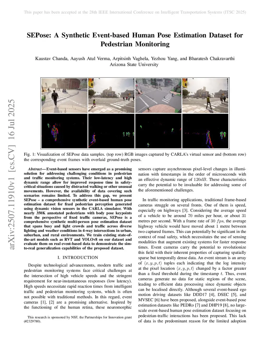 SEPose: A Synthetic Event-based Human Pose Estimation Dataset for Pedestrian Monitoring