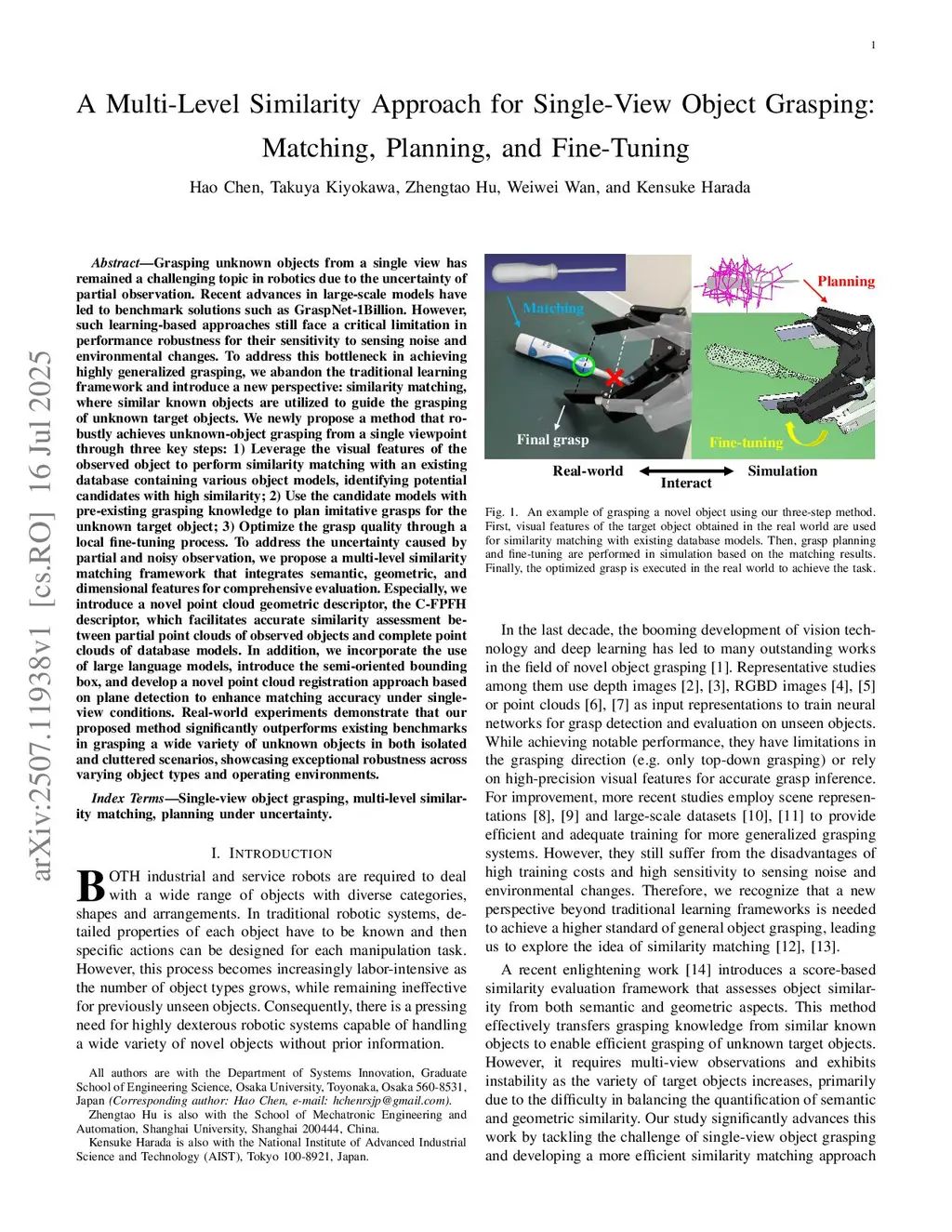 A Multi-Level Similarity Approach for Single-View Object Grasping: Matching, Planning, and Fine-Tuning