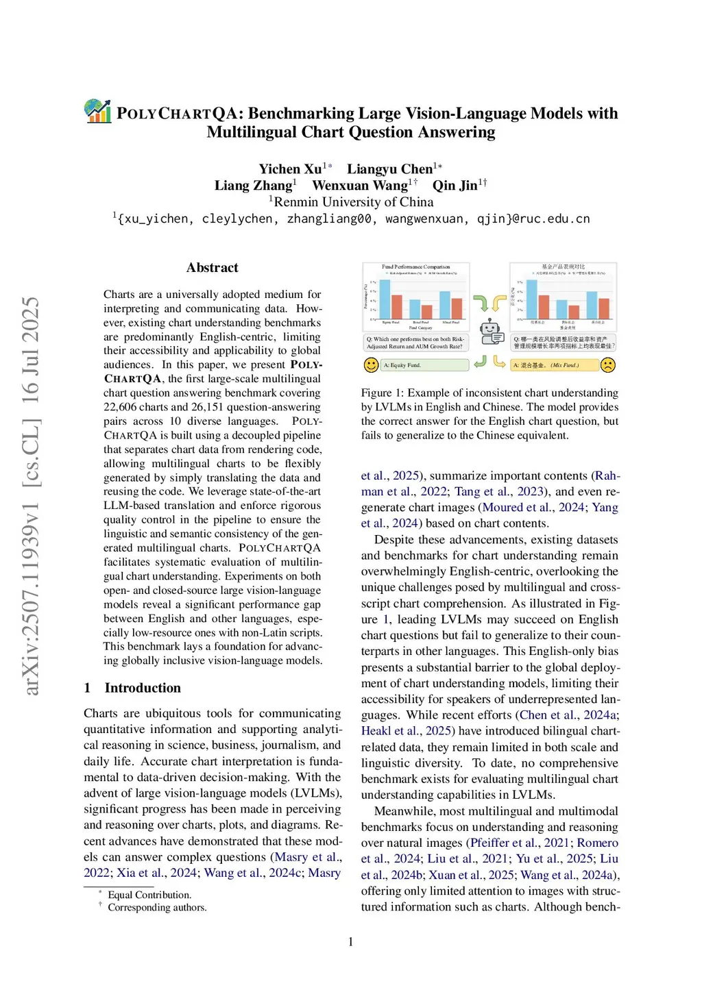 POLYCHARTQA: Benchmarking Large Vision-Language Models with Multilingual Chart Question Answering