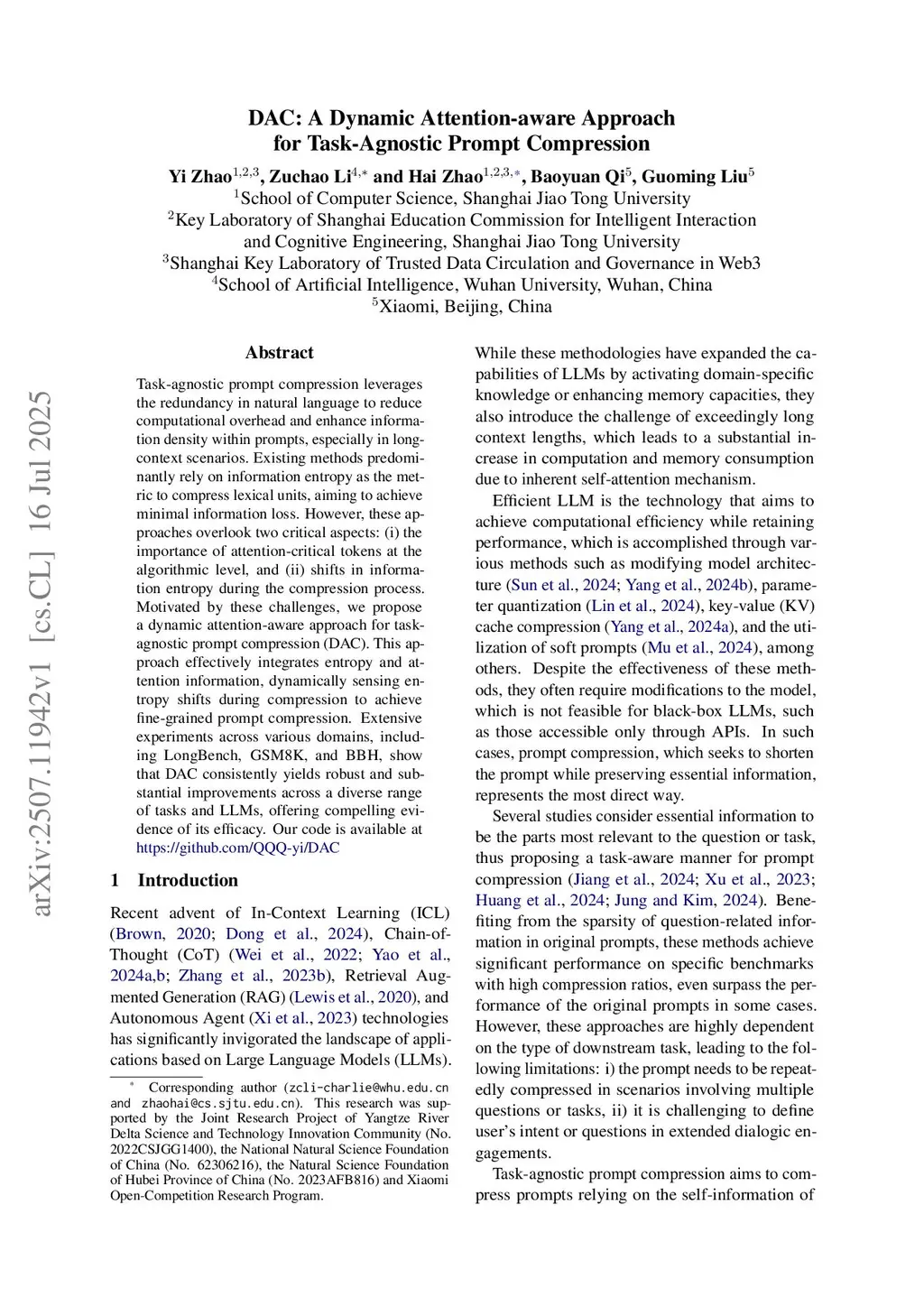 DAC: A Dynamic Attention-aware Approach for Task-Agnostic Prompt Compression