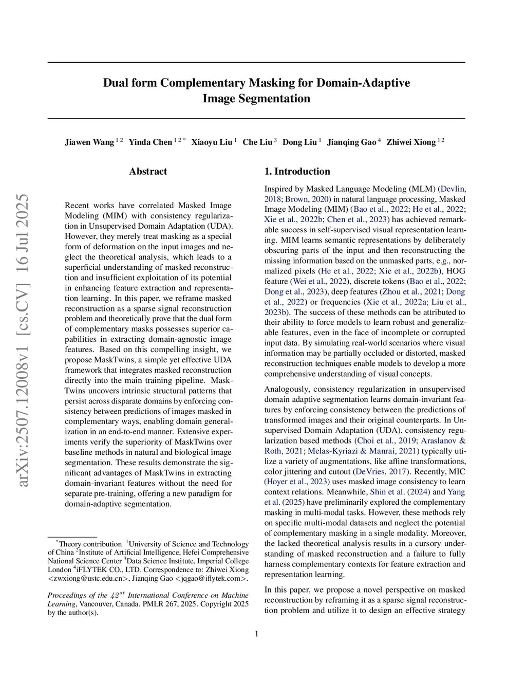 Dual form Complementary Masking for Domain-Adaptive Image Segmentation