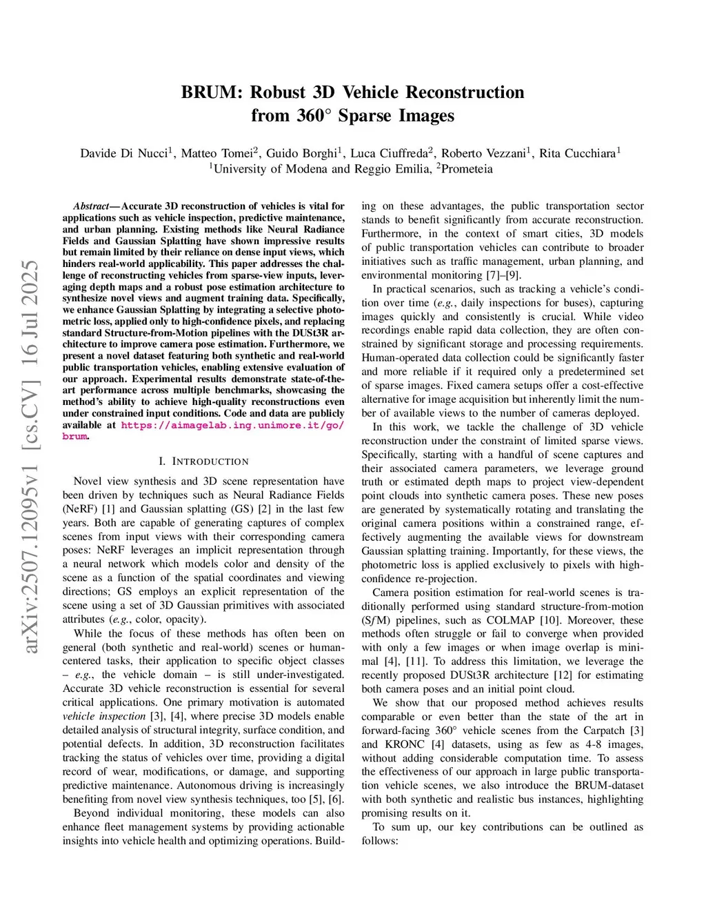 BRUM: Robust 3D Vehicle Reconstruction from 360 Sparse Images