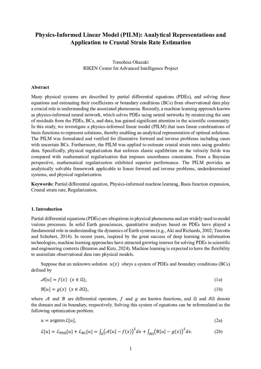 Physics-Informed Linear Model (PILM): Analytical Representations and Application to Crustal Strain Rate Estimation