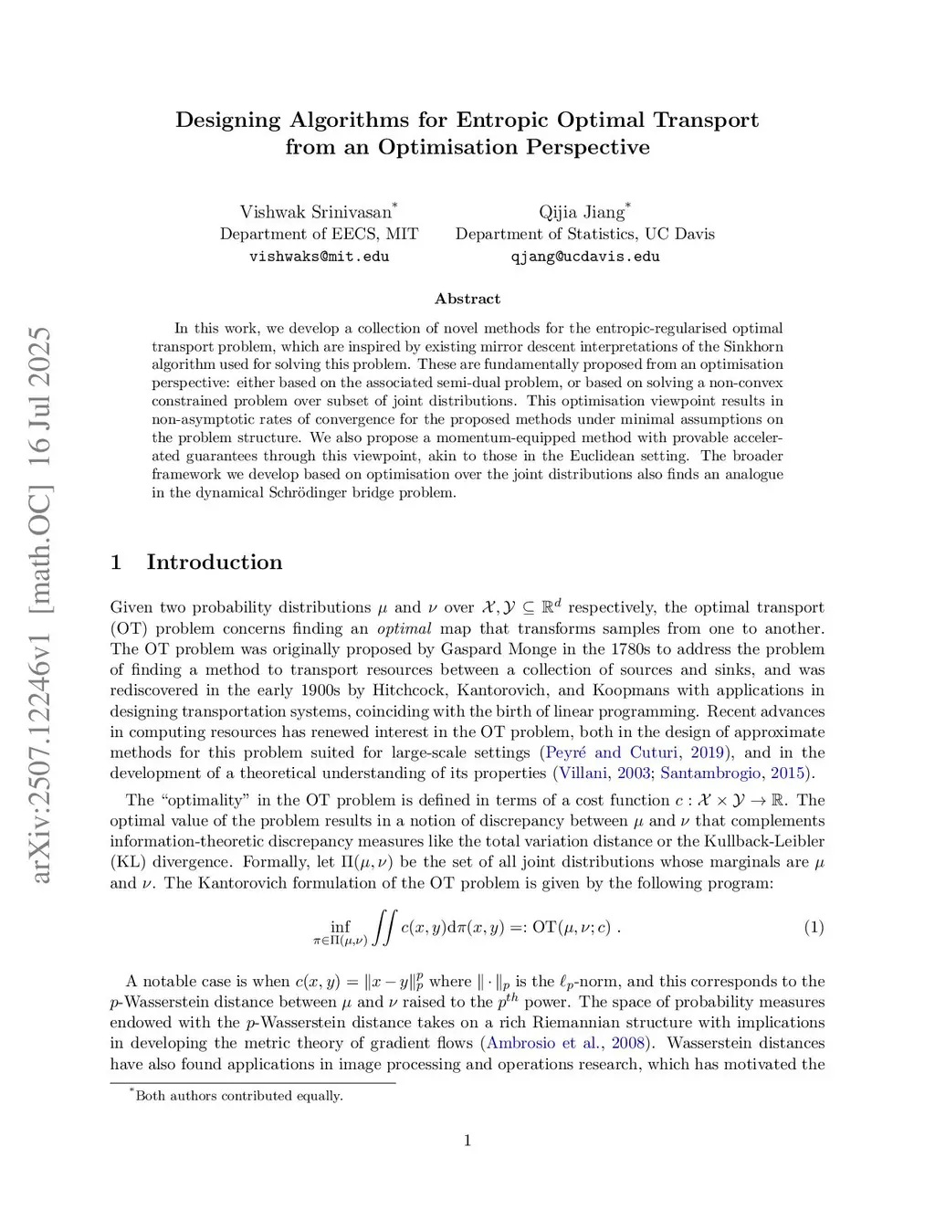 Designing Algorithms for Entropic Optimal Transport from an Optimisation Perspective