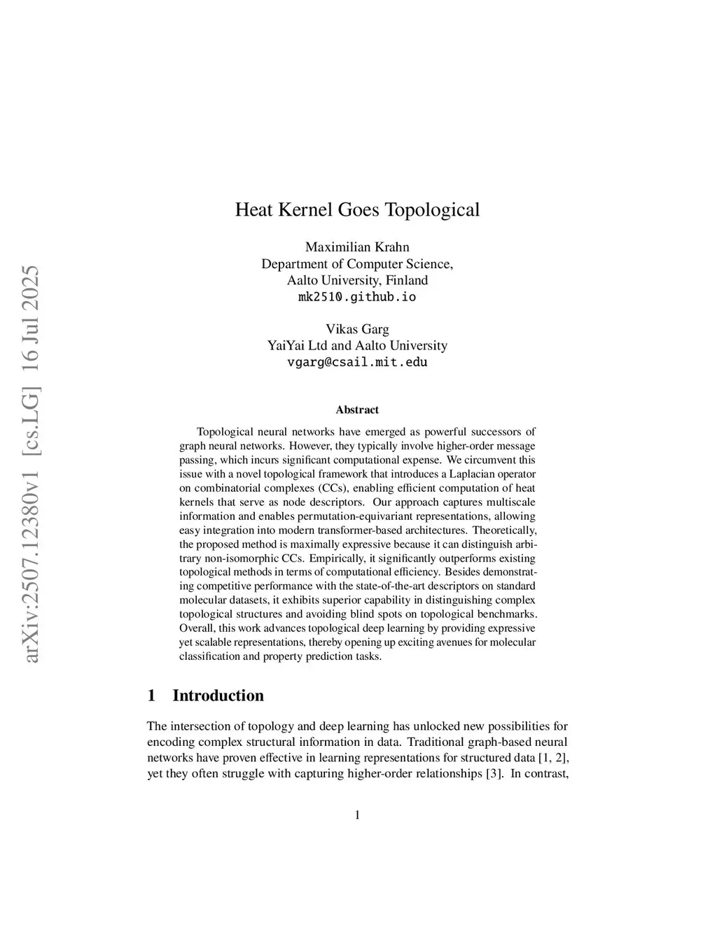 Heat Kernel Goes Topological
