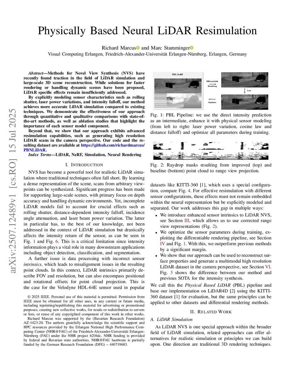 Physically Based Neural LiDAR Resimulation