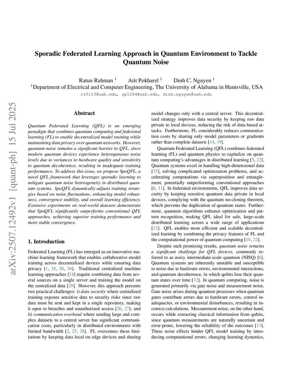 Sporadic Federated Learning Approach in Quantum Environment to Tackle Quantum Noise