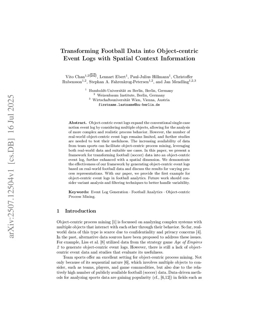 Transforming Football Data into Object-centric Event Logs with Spatial Context Information