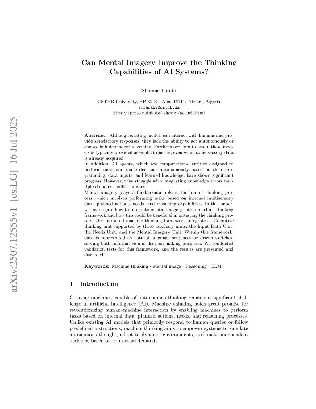 Can Mental Imagery Improve the Thinking Capabilities of AI Systems?