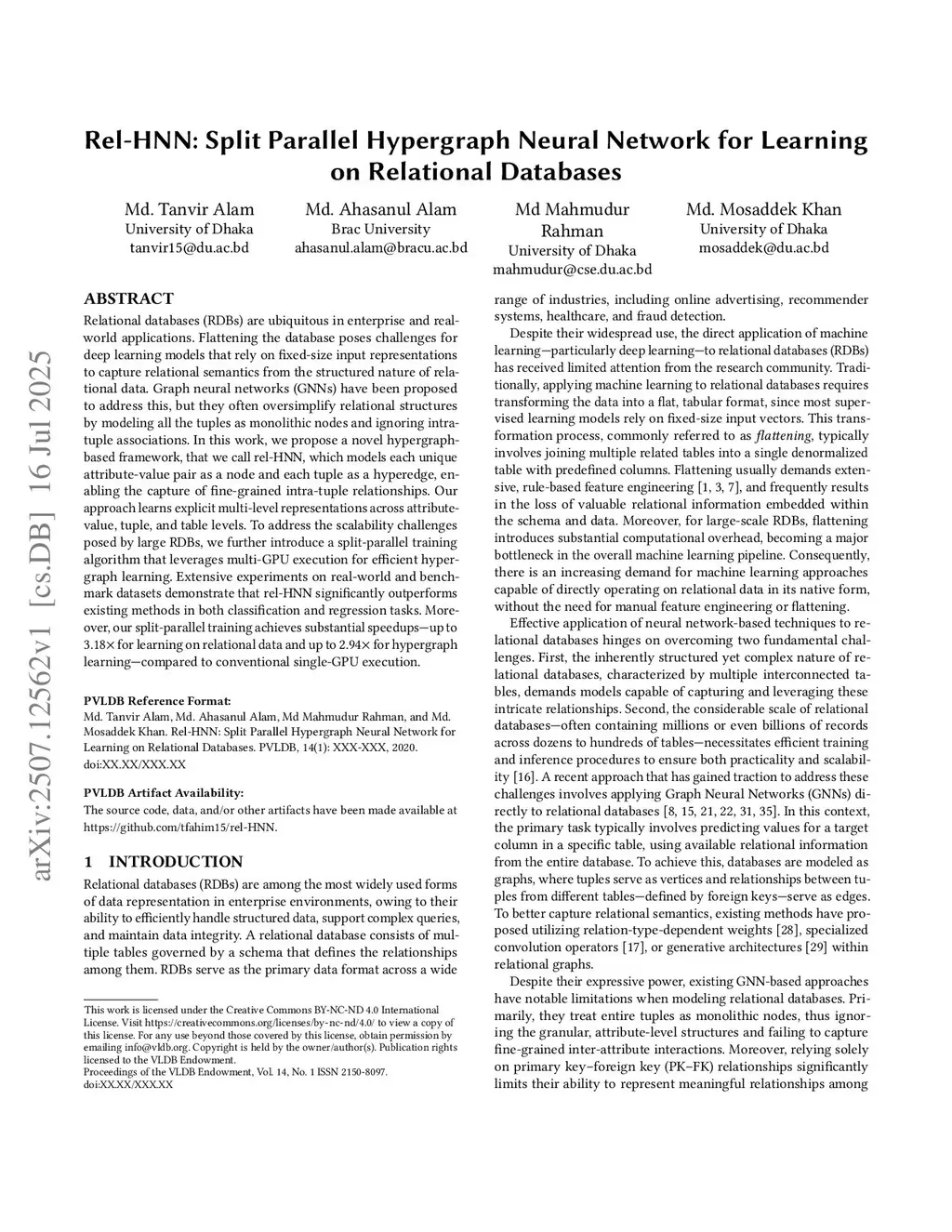 Rel-HNN: Split Parallel Hypergraph Neural Network for Learning on Relational Databases