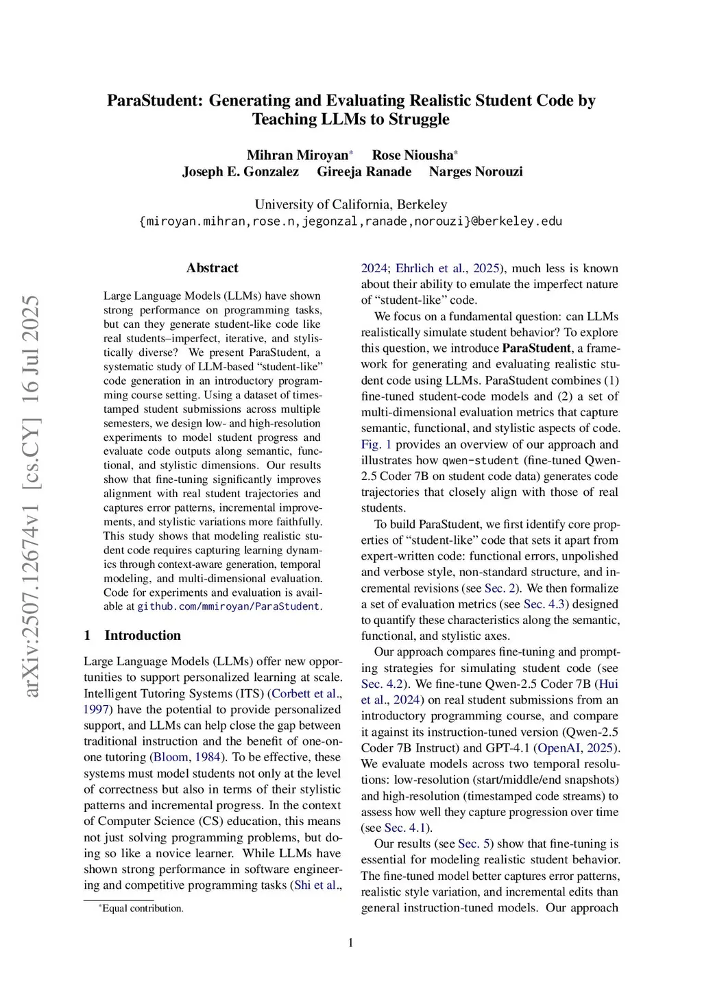 ParaStudent: Generating and Evaluating Realistic Student Code by Teaching LLMs to Struggle