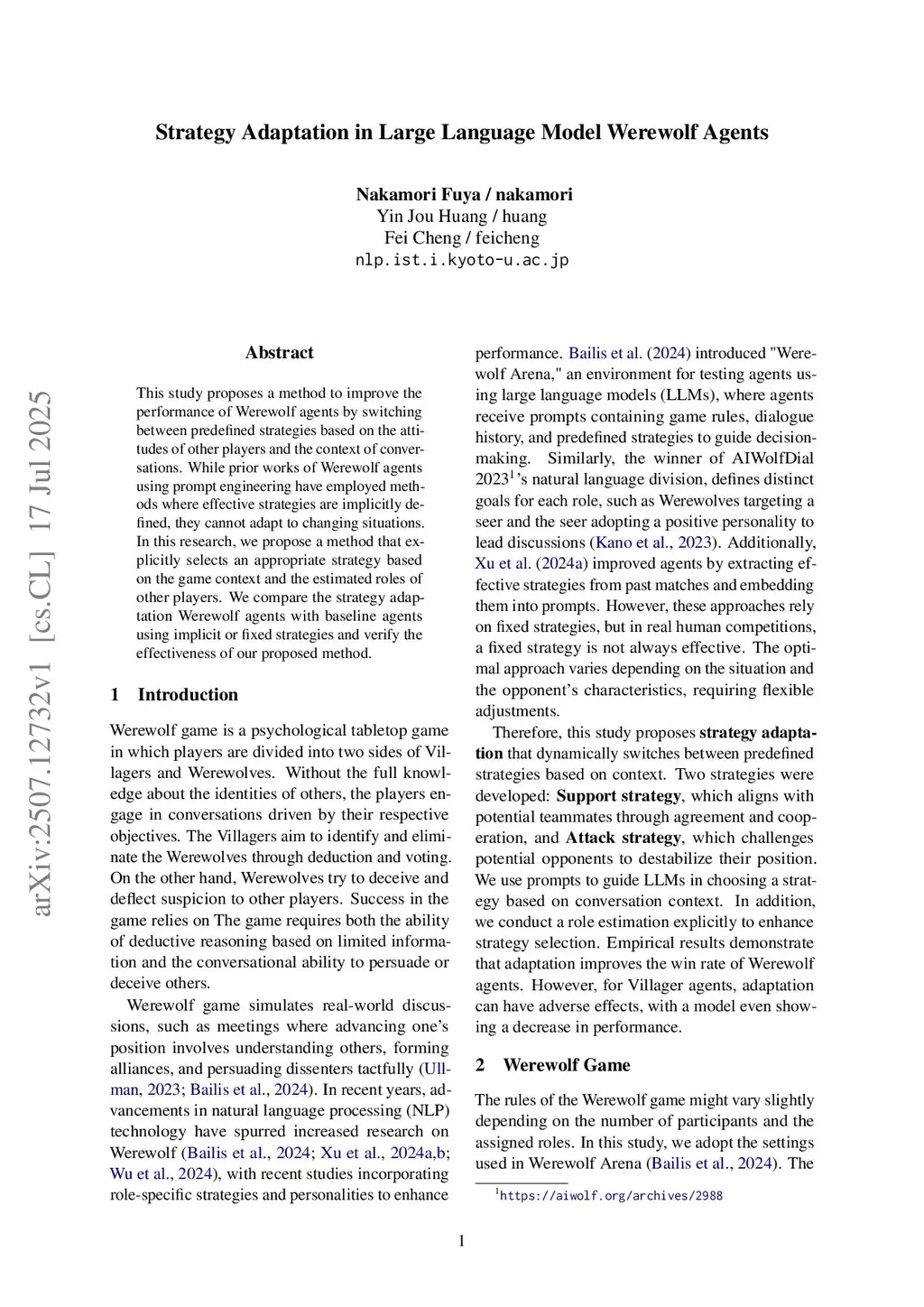 Strategy Adaptation in Large Language Model Werewolf Agents