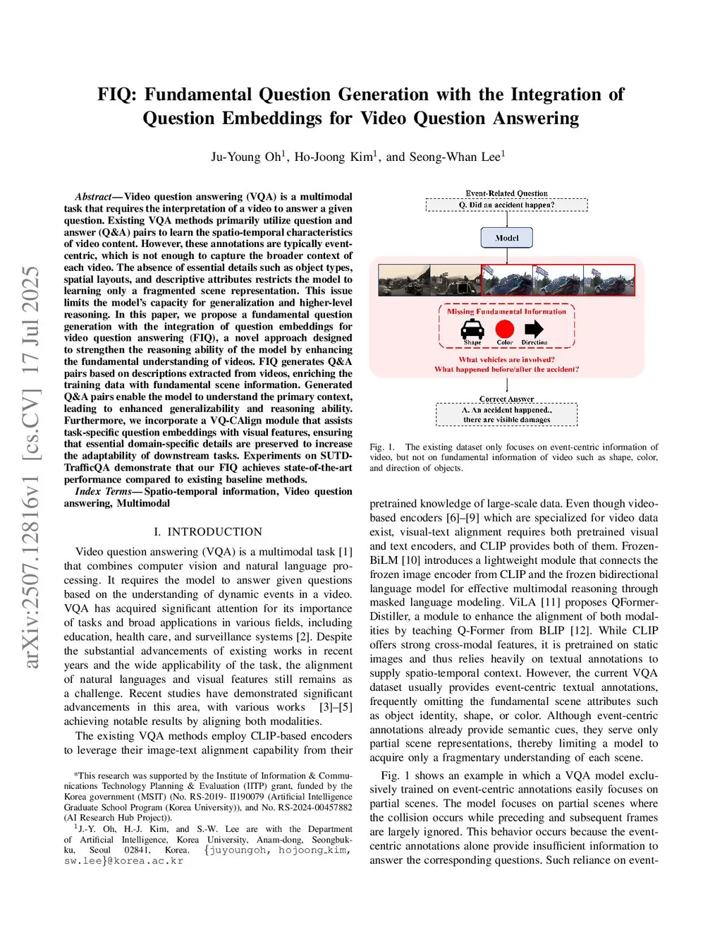 FIQ: Fundamental Question Generation with the Integration of Question Embeddings for Video Question Answering