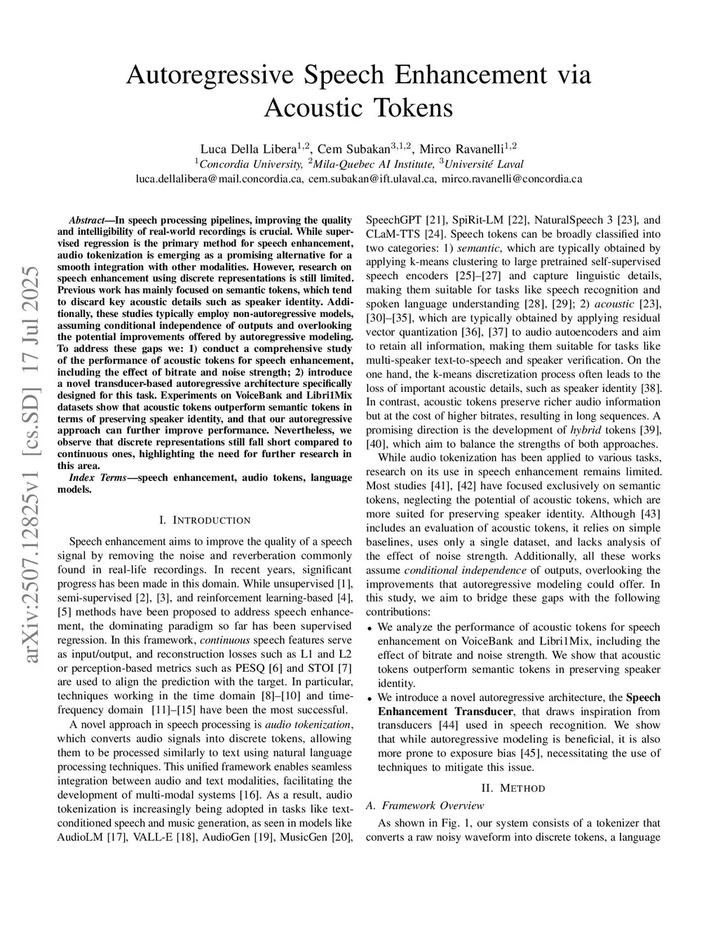 Autoregressive Speech Enhancement via Acoustic Tokens