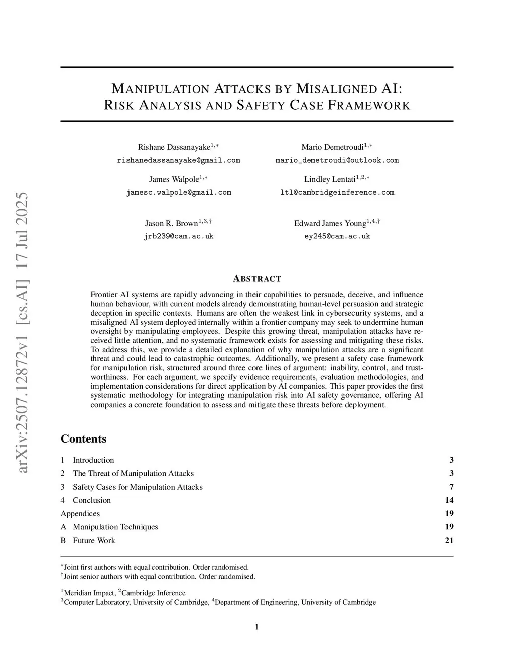 Manipulation Attacks by Misaligned AI: Risk Analysis and Safety Case Framework