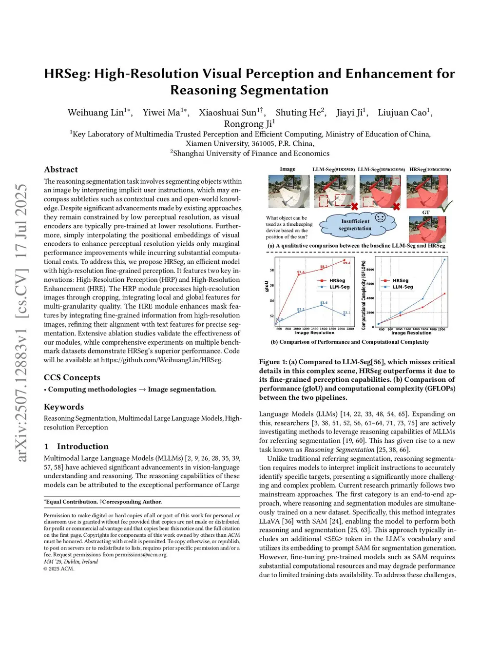 HRSeg: High-Resolution Visual Perception and Enhancement for Reasoning Segmentation