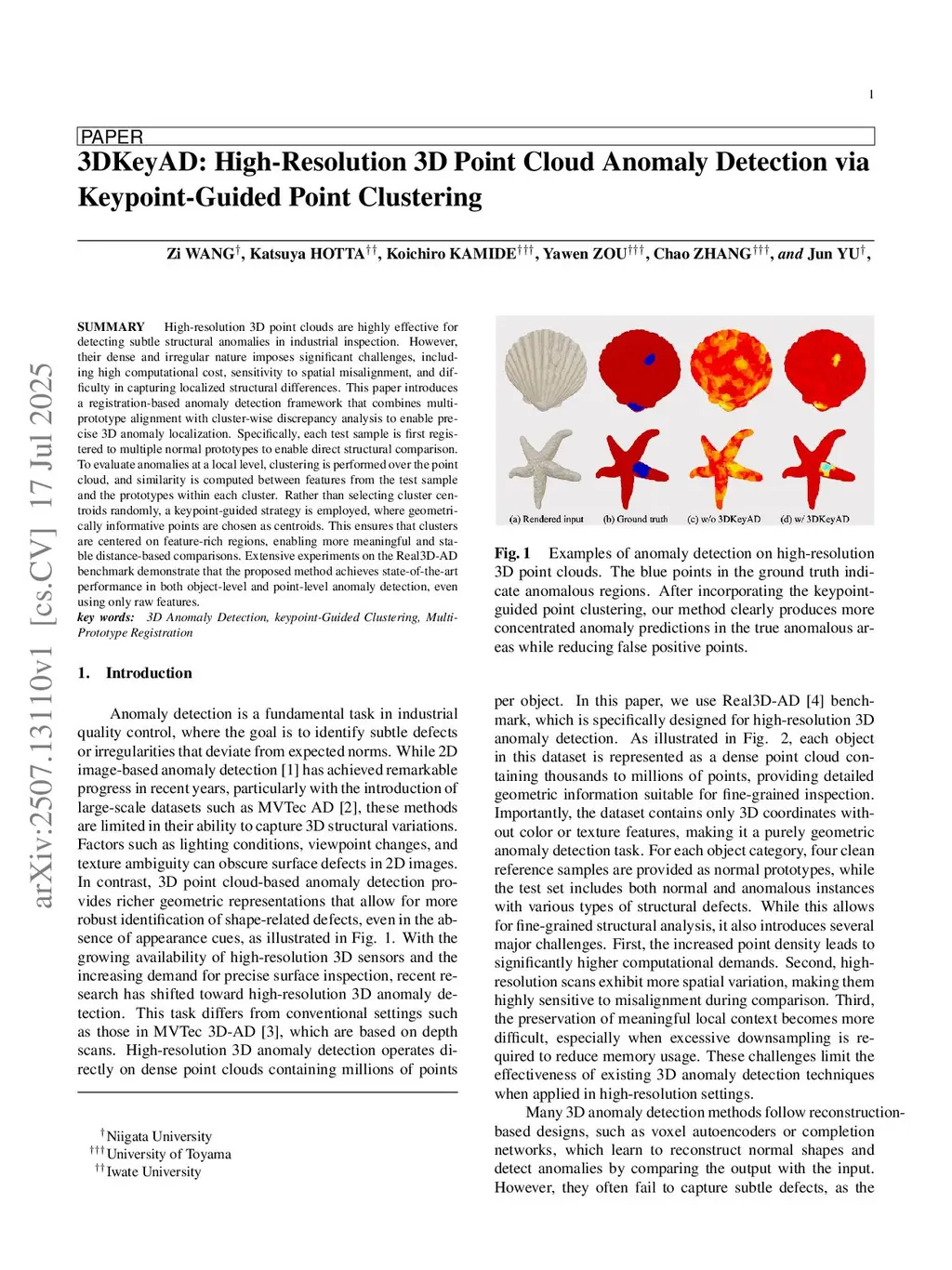 3DKeyAD: High-Resolution 3D Point Cloud Anomaly Detection via Keypoint-Guided Point Clustering