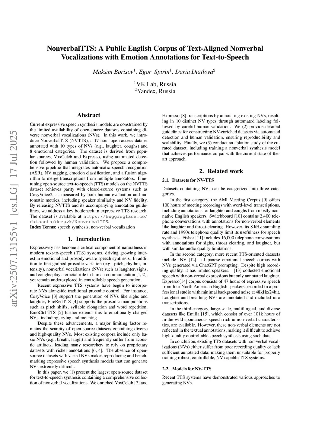 Current expressive speech synthesis models are constrained by the limited availability of open-source datasets containing diverse nonverbal vocalizations (NVs). In this work, we introduce NonverbalTTS (NVTTS), a 17-hour open-access dataset annotated with 10 types of NVs (e.g., laughter, coughs) and 8 emotional categories. The dataset is derived from popular sources, VoxCeleb and Expresso, using automated detection followed by human validation. We propose a comprehensive pipeline that integrates automatic speech recognition (ASR), NV tagging, emotion classification, and a fusion algorithm to merge transcriptions from multiple annotators. Fine-tuning open-source text-to-speech (TTS) models on the NVTTS dataset achieves parity with closed-source systems such as CosyVoice2, as measured by both human evaluation and automatic metrics, including speaker similarity and NV fidelity. By releasing NVTTS and its accompanying annotation guidelines, we address a key bottleneck in expressive TTS research. The dataset is available atthis https URL.