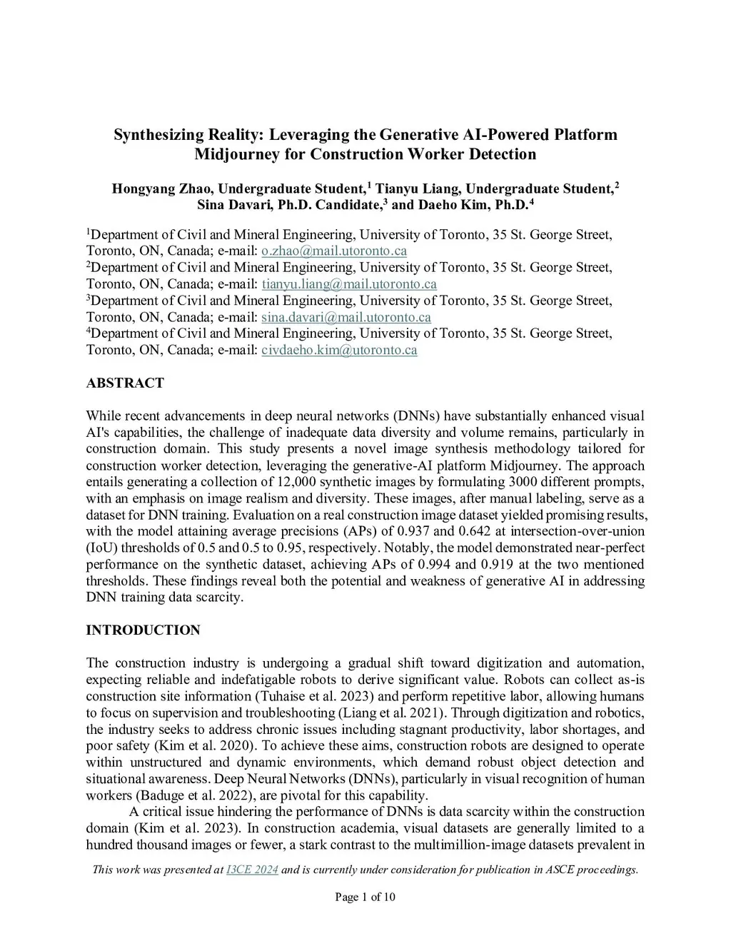 Synthesizing Reality: Leveraging the Generative AI-Powered Platform Midjourney for Construction Worker Detection