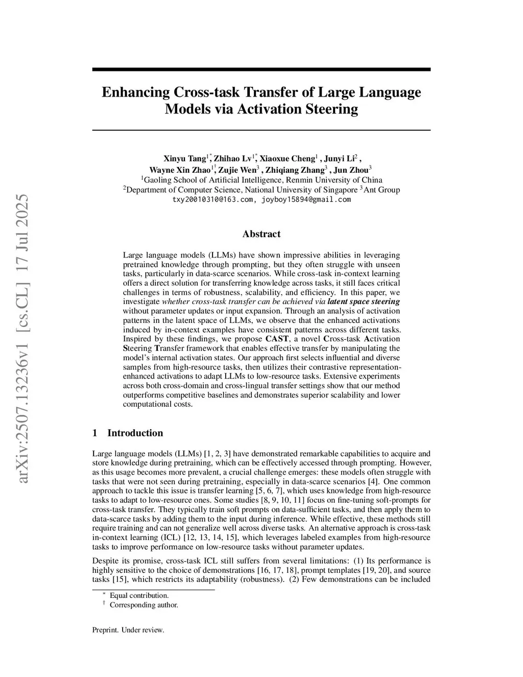 Enhancing Cross-task Transfer of Large Language Models via Activation Steering