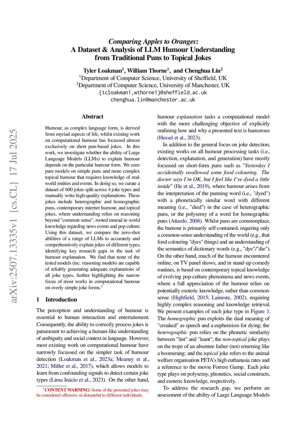 Comparing Apples to Oranges: A Dataset & Analysis of LLM Humour Understanding from Traditional Puns to Topical Jokes