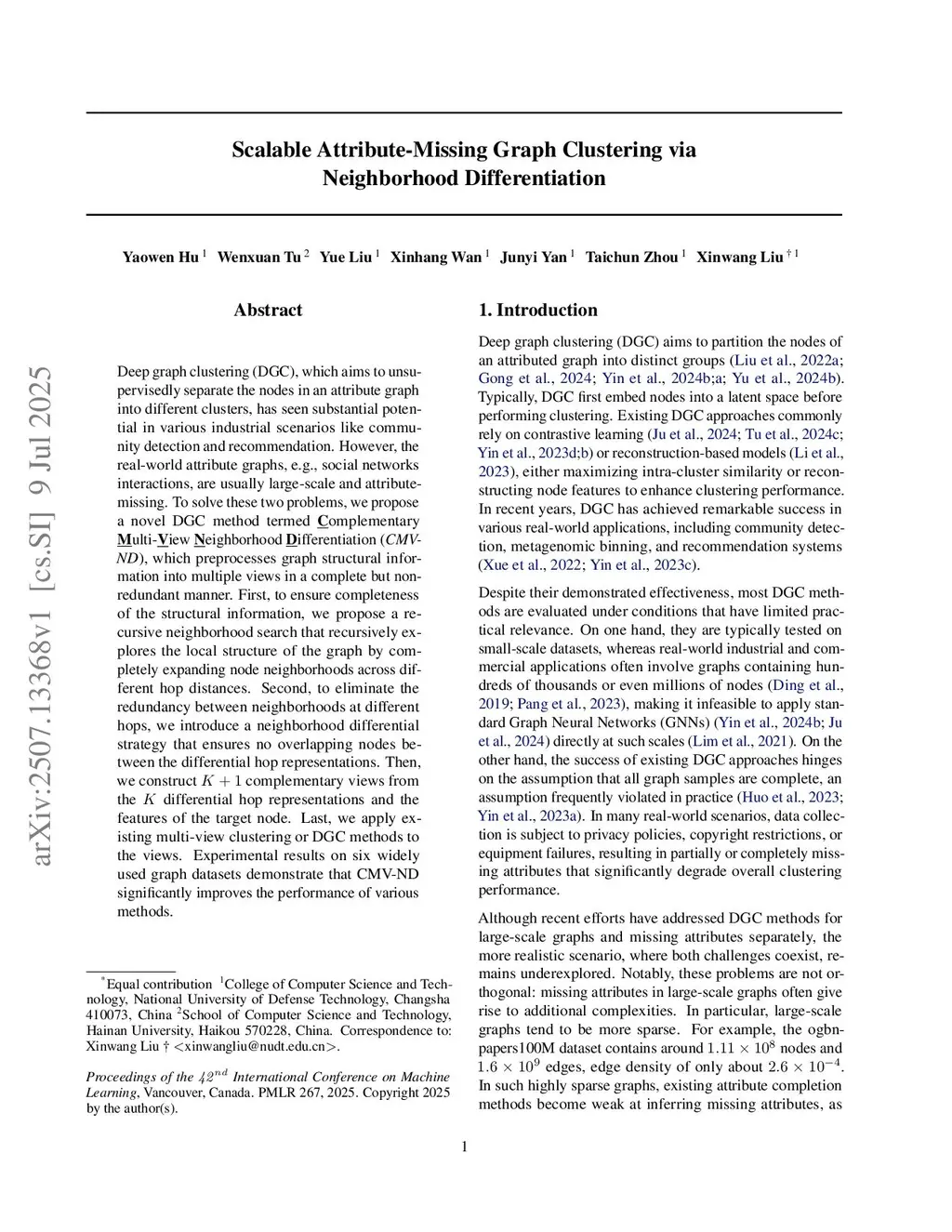 Scalable Attribute-Missing Graph Clustering via Neighborhood Differentiation