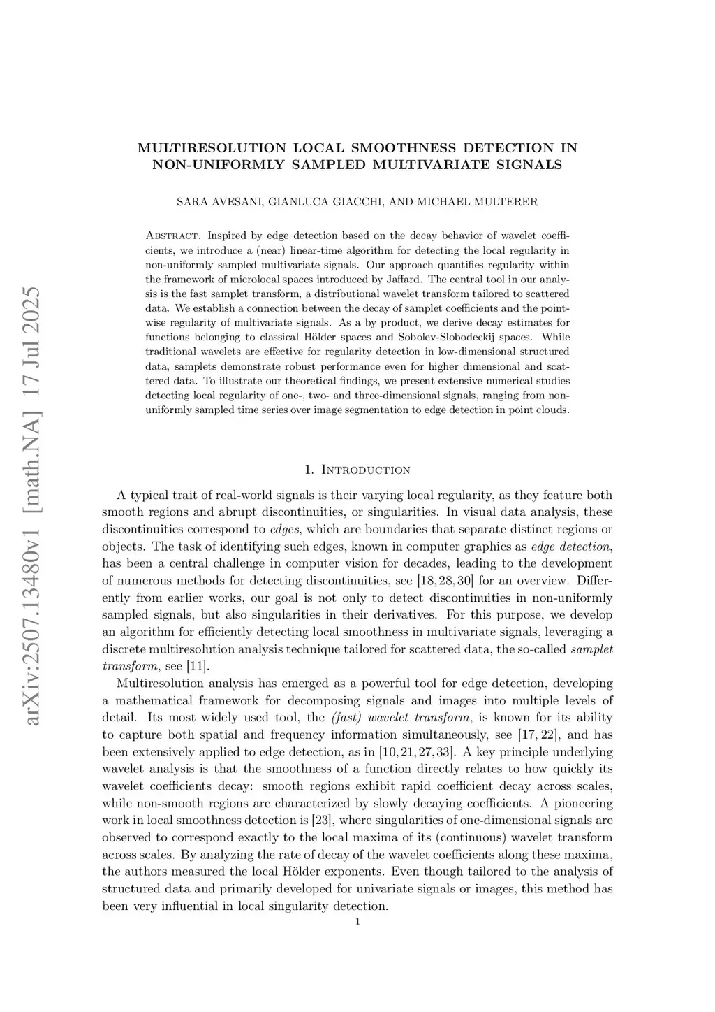 Multiresolution local smoothness detection in non-uniformly sampled multivariate signals