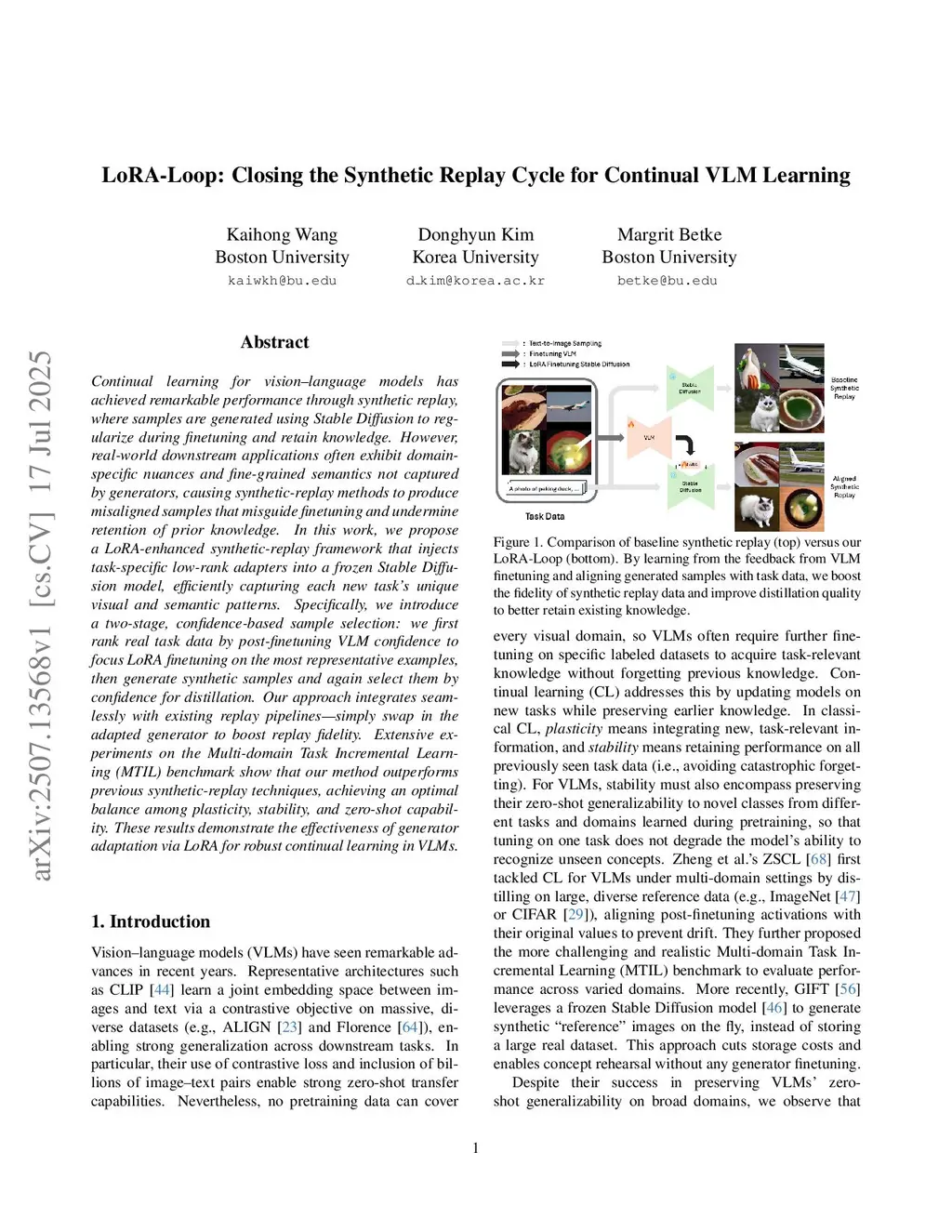 LoRA-Loop: Closing the Synthetic Replay Cycle for Continual VLM Learning