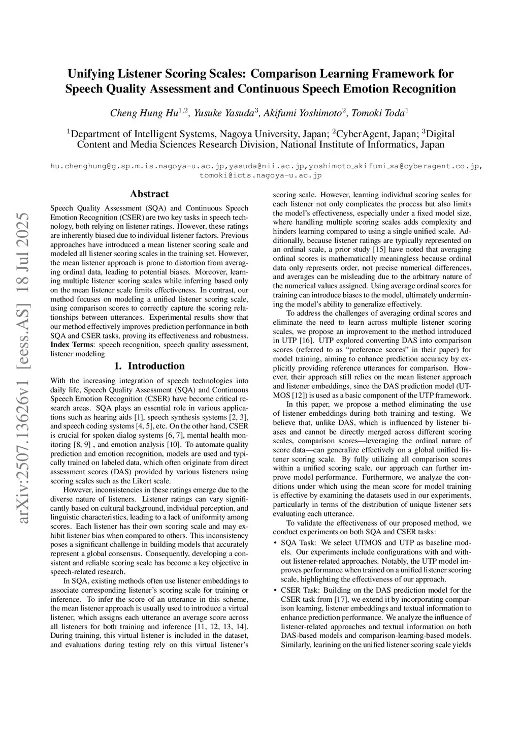 Speech Quality Assessment (SQA) and Continuous Speech Emotion Recognition (CSER) are two key tasks in speech technology, both relying on listener ratings. However, these ratings are inherently biased due to individual listener factors. Previous approaches have introduced a mean listener scoring scale and modeled all listener scoring scales in the training set. However, the mean listener approach is prone to distortion from averaging ordinal data, leading to potential biases. Moreover, learning multiple listener scoring scales while inferring based only on the mean listener scale limits effectiveness. In contrast, our method focuses on modeling a unified listener scoring scale, using comparison scores to correctly capture the scoring relationships between utterances. Experimental results show that our method effectively improves prediction performance in both SQA and CSER tasks, proving its effectiveness and robustness.