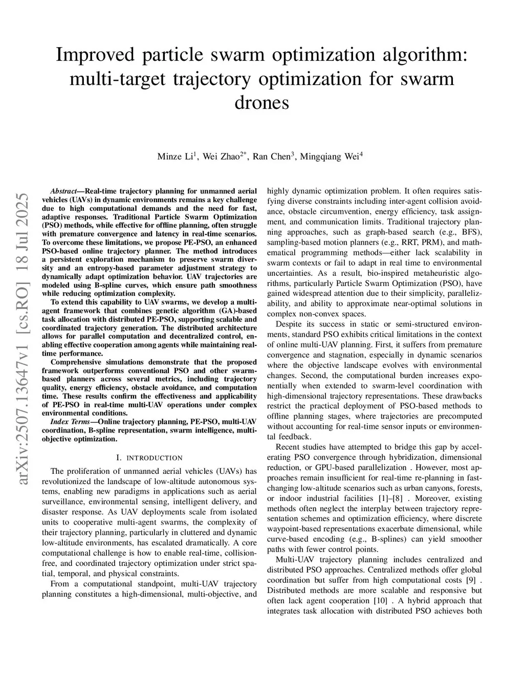 Improved particle swarm optimization algorithm: multi-target trajectory optimization for swarm drones