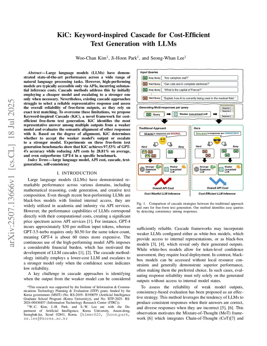 KiC: Keyword-inspired Cascade for Cost-Efficient Text Generation with LLMs
