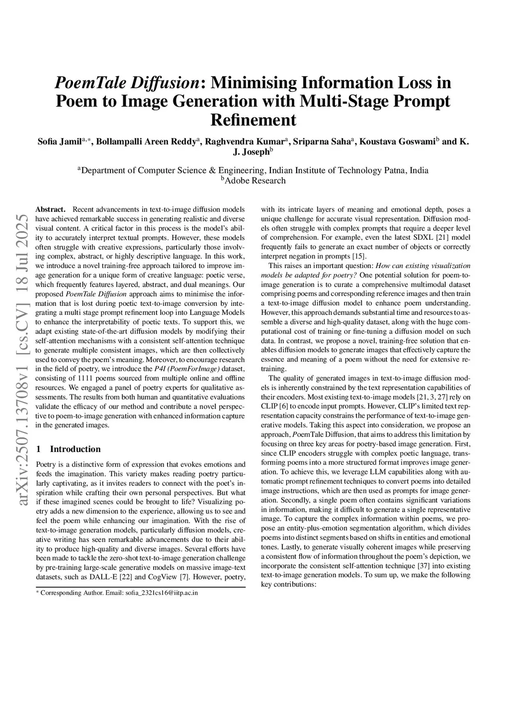 PoemTale Diffusion: Minimising Information Loss in Poem to Image Generation with Multi-Stage Prompt Refinement