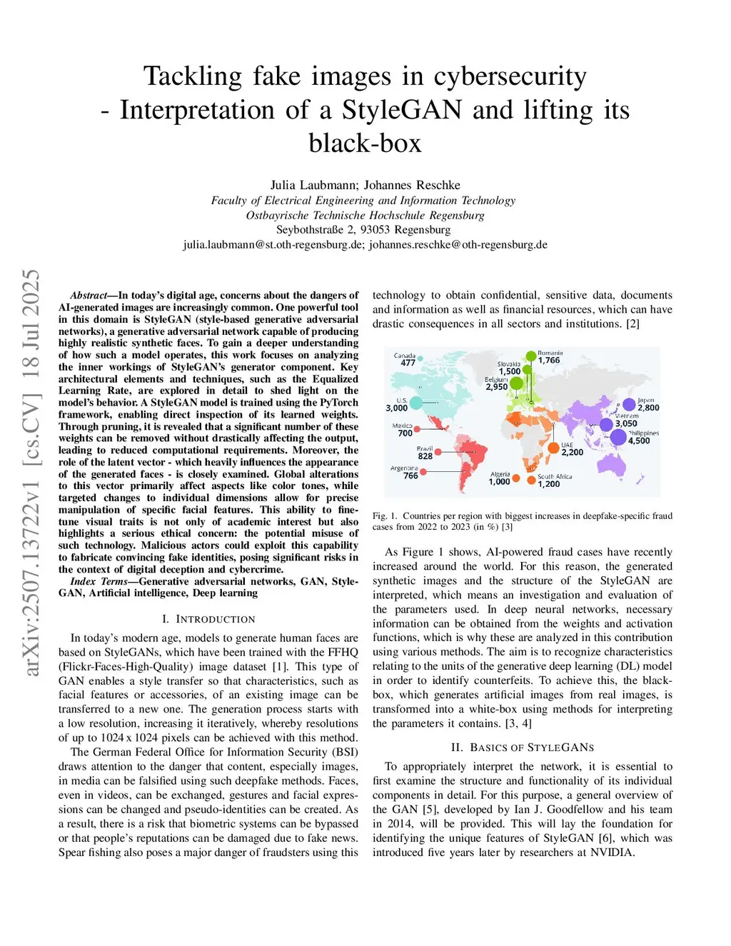 Tackling fake images in cybersecurity -- Interpretation of a StyleGAN and lifting its black-box