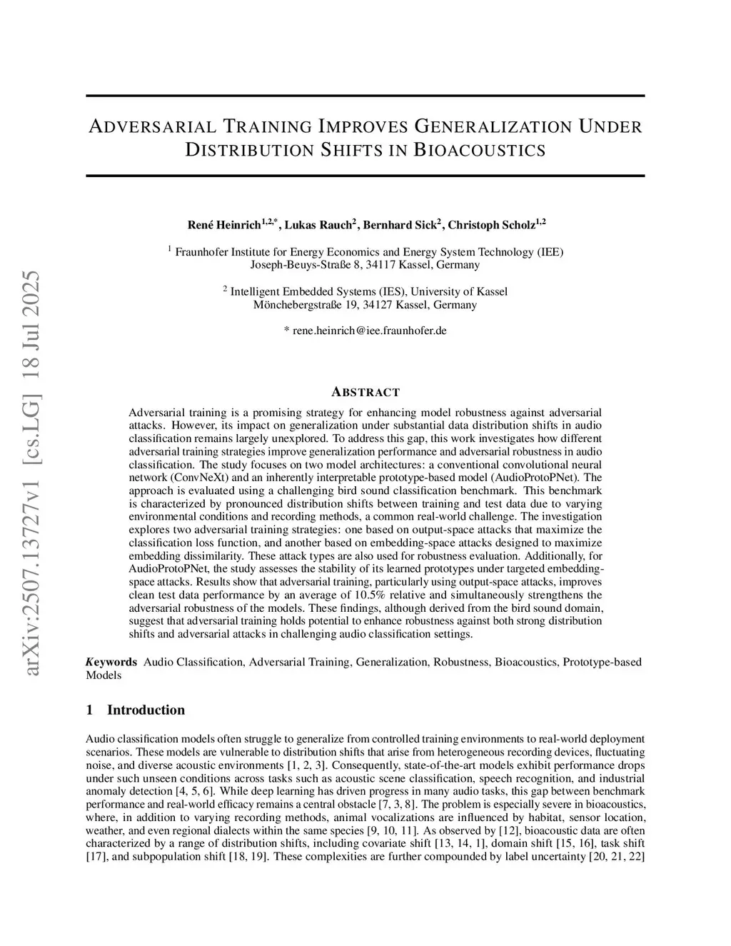 Adversarial Training Improves Generalization Under Distribution Shifts in Bioacoustics