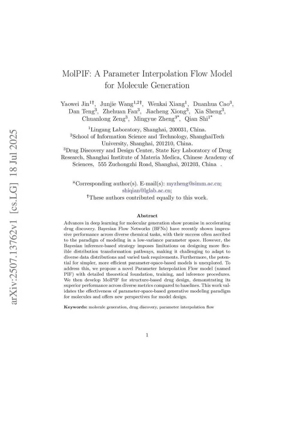 MolPIF: A Parameter Interpolation Flow Model for Molecule Generation