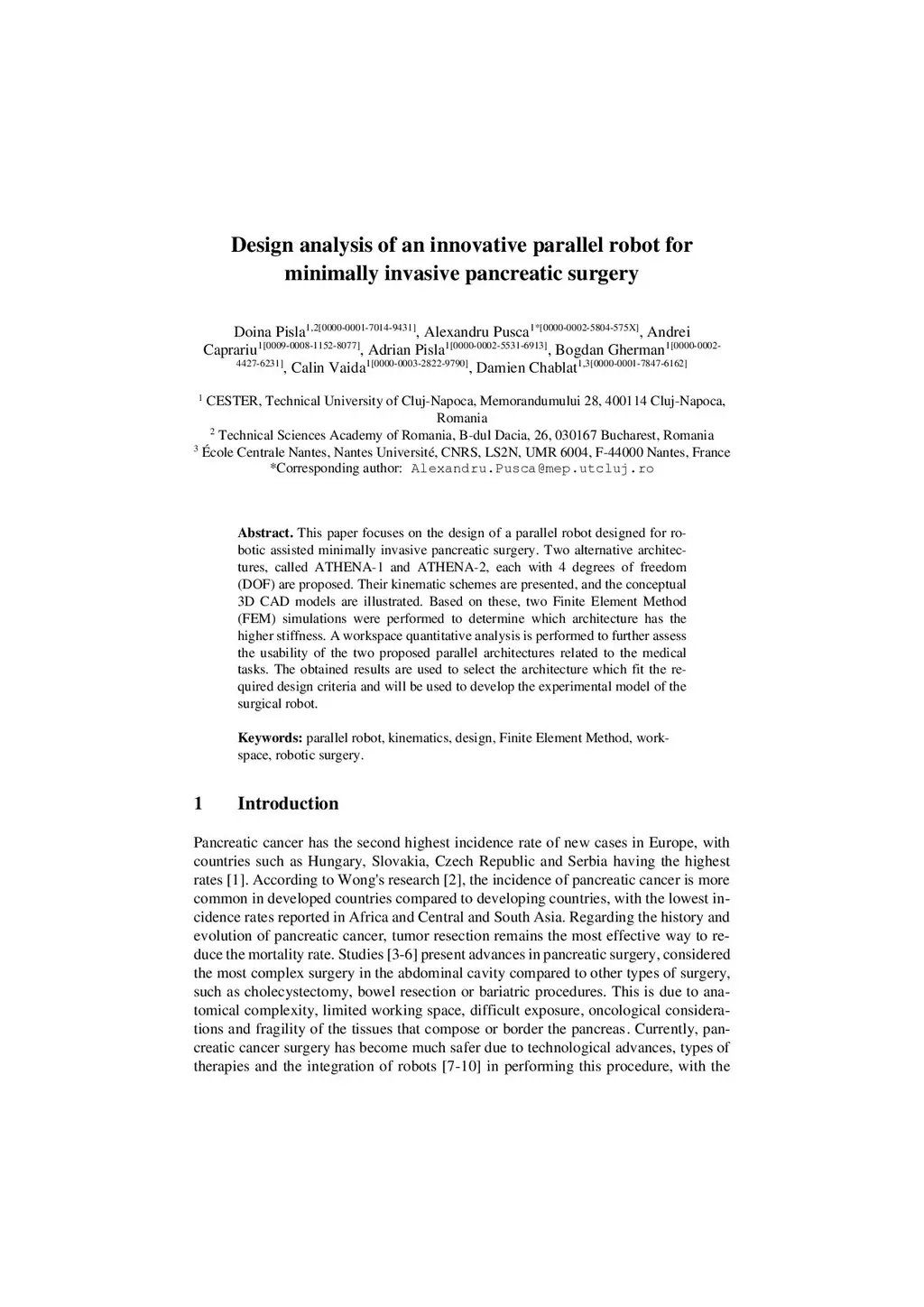 Design Analysis of an Innovative Parallel Robot for Minimally Invasive Pancreatic Surgery