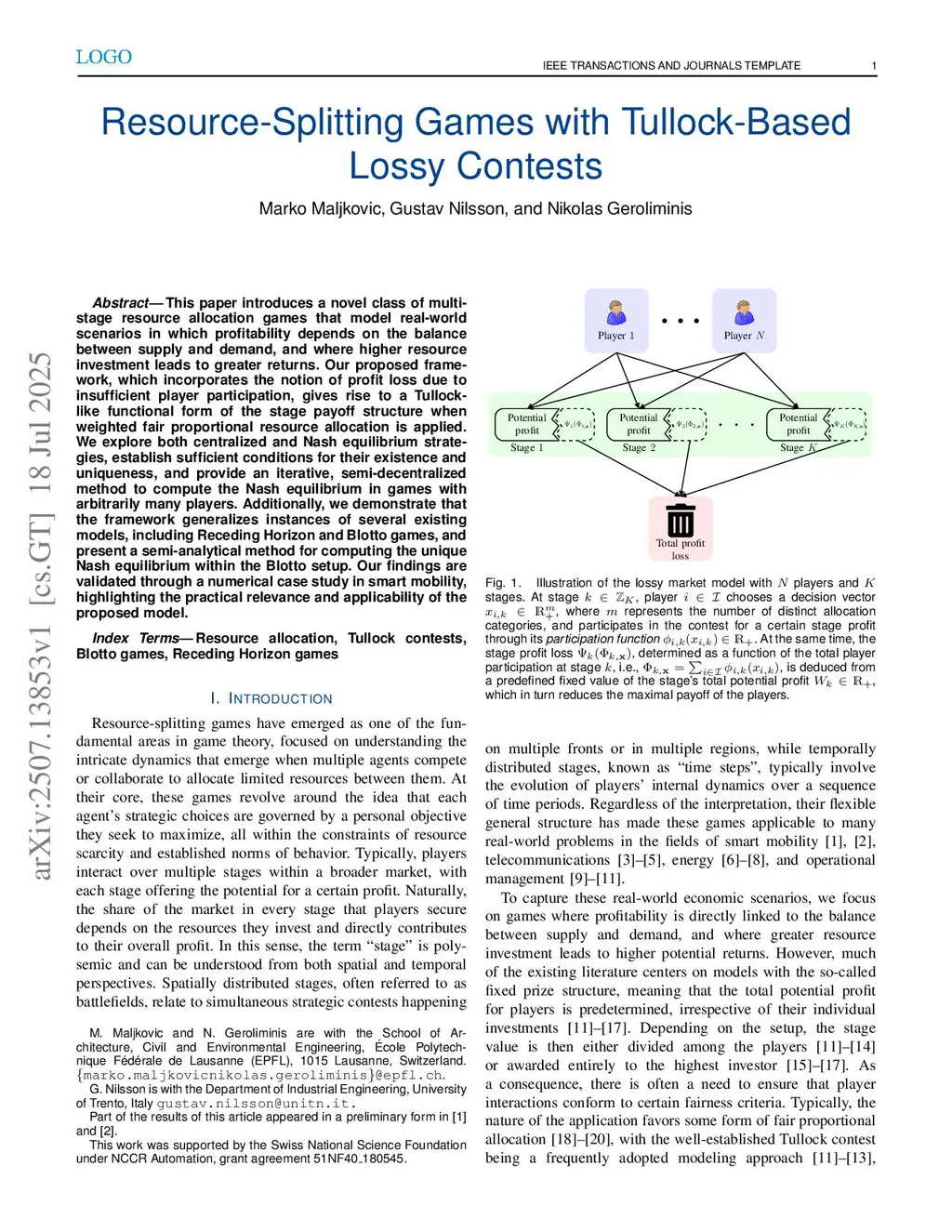 This paper introduces a novel class of multi-stage resource allocation games that model real-world scenarios in which profitability depends on the balance between supply and demand, and where higher resource investment leads to greater returns. Our proposed framework, which incorporates the notion of profit loss due to insufficient player participation, gives rise to a Tullock-like functional form of the stage payoff structure when weighted fair proportional resource allocation is applied. We explore both centralized and Nash equilibrium strategies, establish sufficient conditions for their existence and uniqueness, and provide an iterative, semi-decentralized method to compute the Nash equilibrium in games with arbitrarily many players. Additionally, we demonstrate that the framework generalizes instances of several existing models, including Receding Horizon and Blotto games, and present a semi-analytical method for computing the unique Nash equilibrium within the Blotto setup. Our findings are validated through a numerical case study in smart mobility, highlighting the practical relevance and applicability of the proposed model.